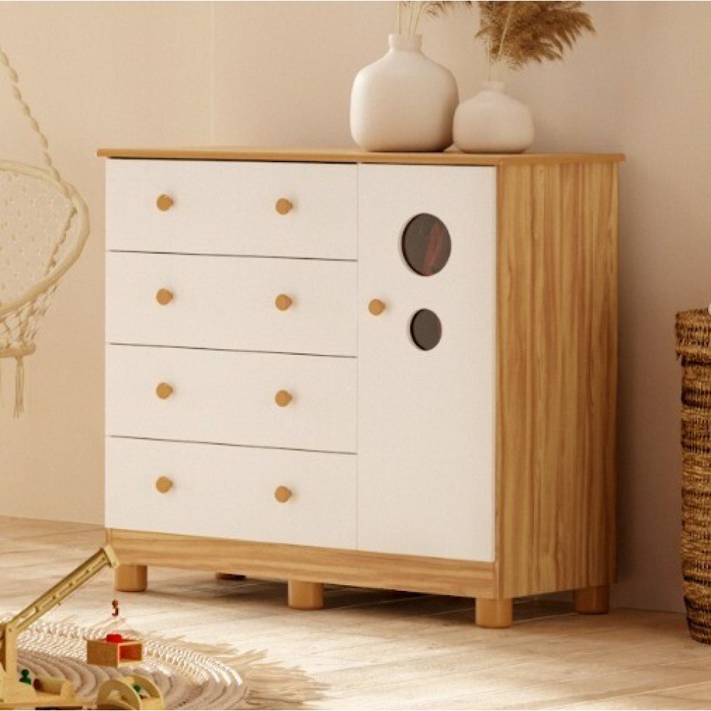 Mais organização e praticidade para o seu quarto com a Cômoda Duda Plus da Peroba.