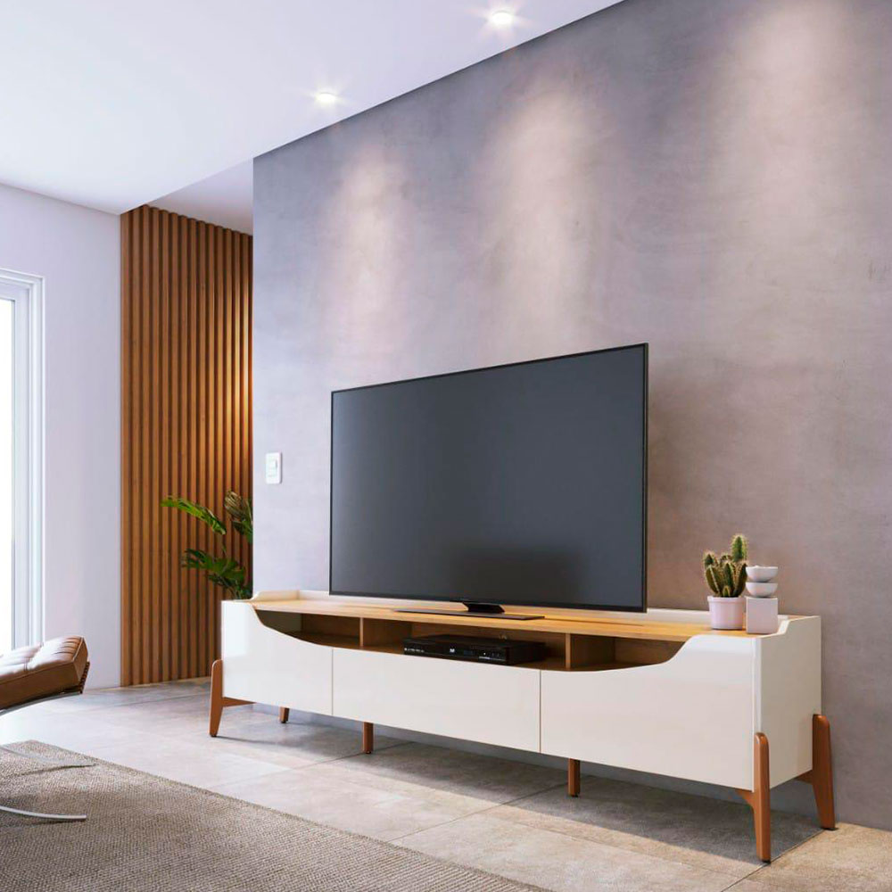 Com o Rack Bancada Para Sala Studio 2.2 Off White Nature - Imcal sua sala de estar ganha mais organização e um visual moderno e sofisticado.